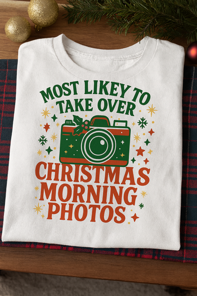 Each shirt features a playful “Most Likely To…” holiday quote, bold festive graphics, and bright Christmas colors that pop beautifully in photos. Made with soft, breathable cotton, these tees are comfy enough for all-day wear—from cookie baking to gift-opening chaos.
